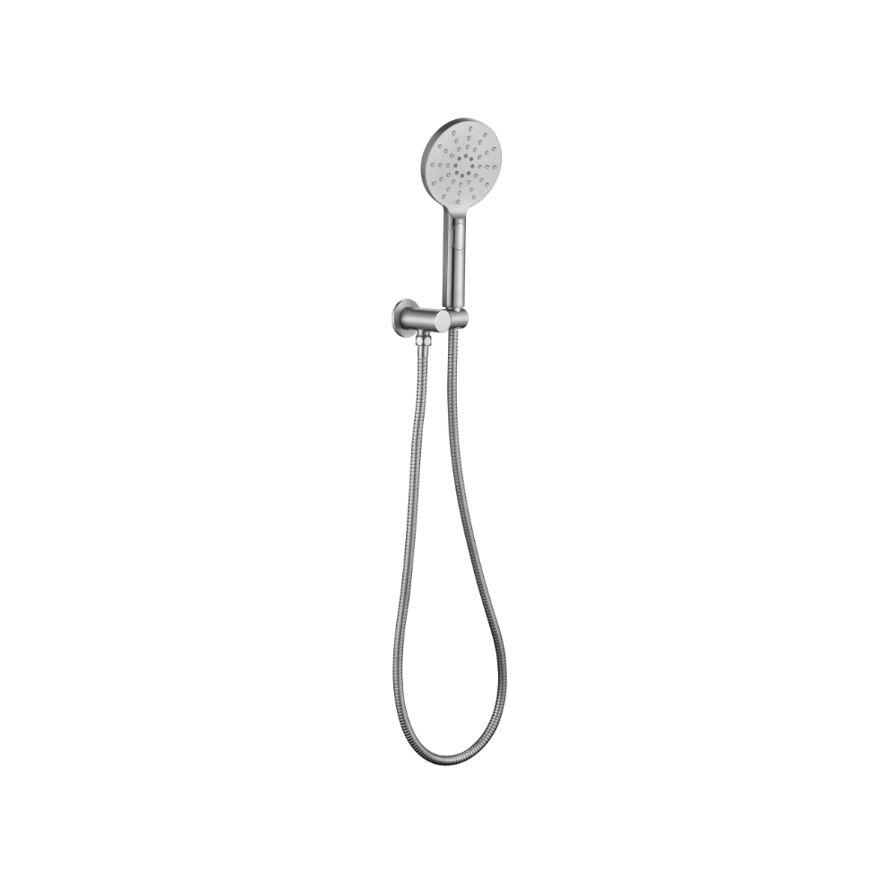 A Functional and sleek design that will enhance your bathroom space. The Riva Round Hand Shower With Bracket has three functions which include, standard, jet and combination.